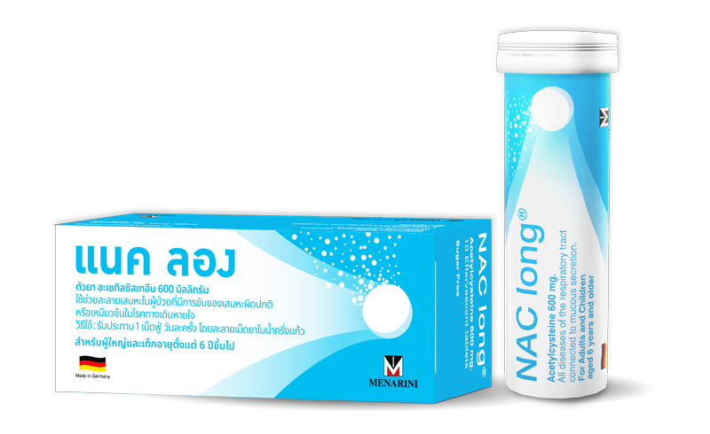 This effervescent tablet contains N-Acetylcysteine, a mucolytic agent for the treatment of phlegm associated with cough.